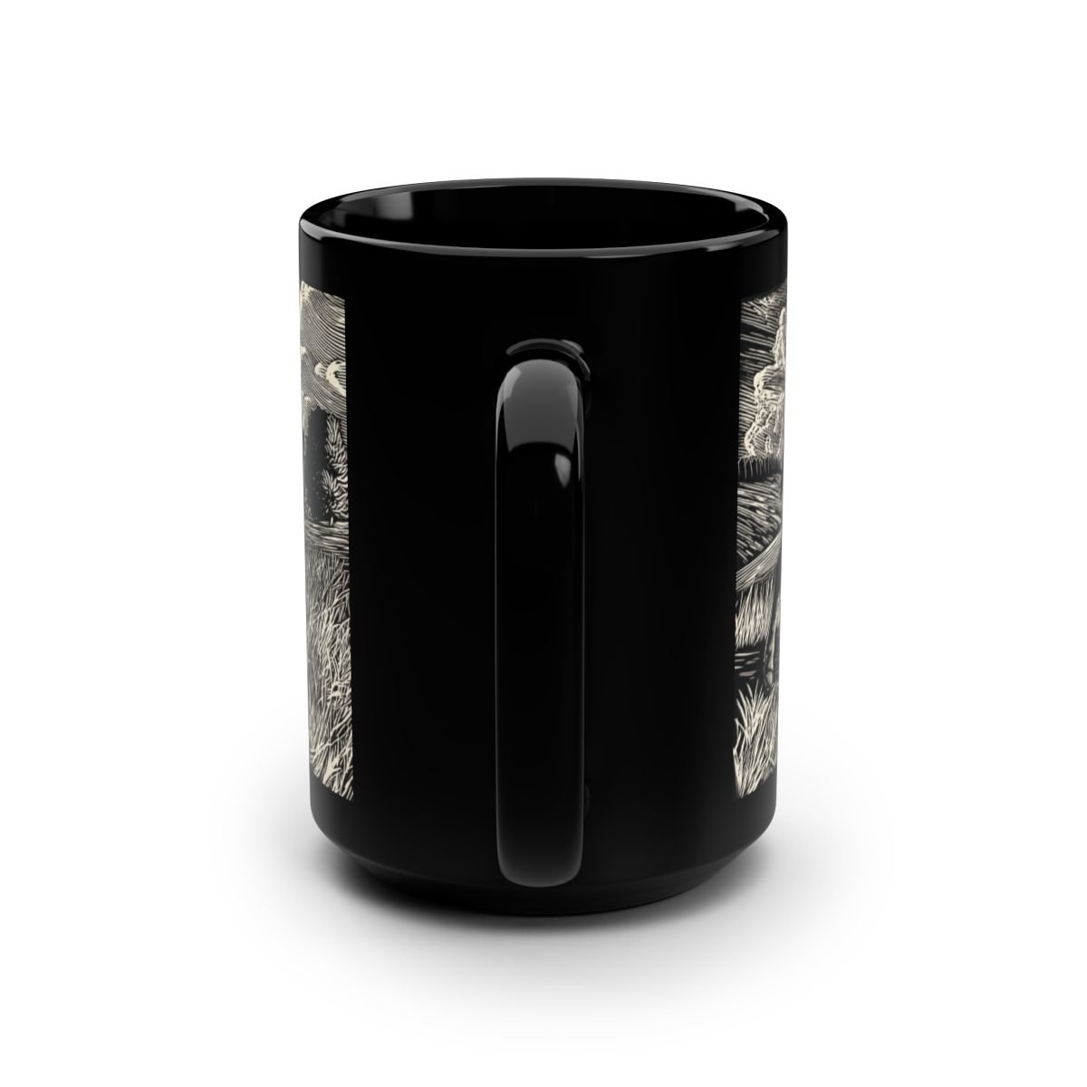 These black mugs come in one size – 15oz (0.44l) – plenty for morning caffeine boosts and hot cups of tea on a rainy day. They're easy to grip and feel sturdy thanks to the C-shaped handle. Add more personality by decorating them with your original designs. They'll be printed on the black ceramic material in picture-perfect quality with a glossy finish.