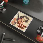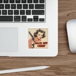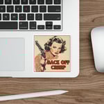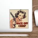 Back off creep vintage Die-Cut Sticker, women with gun