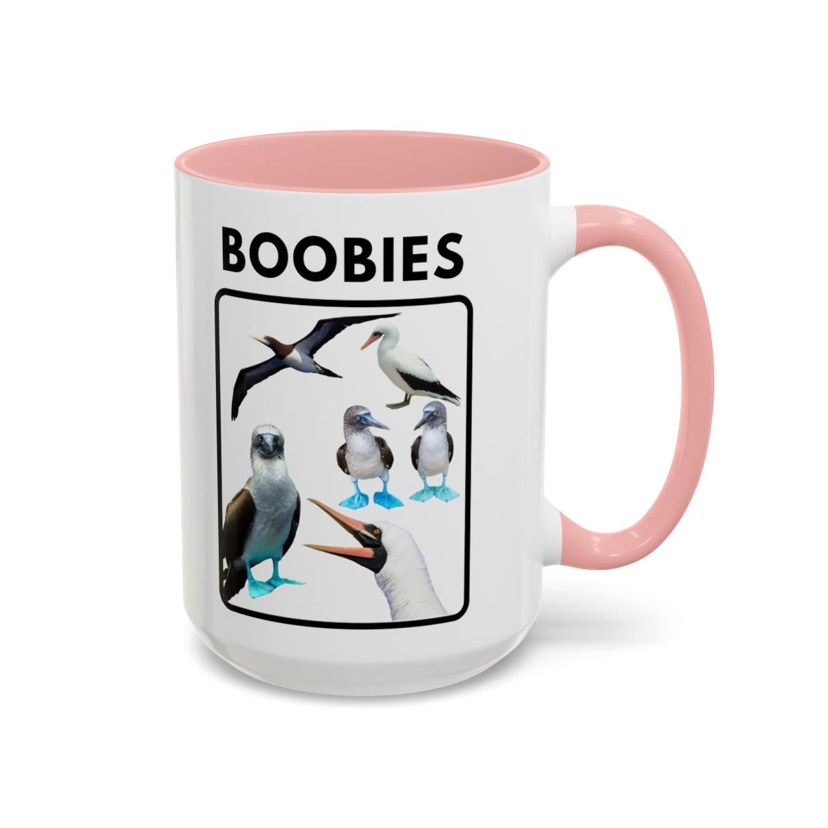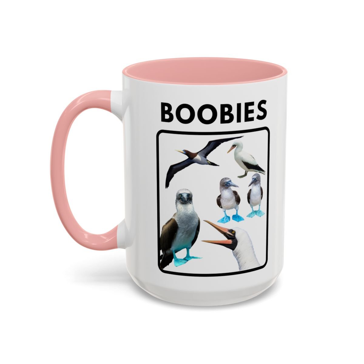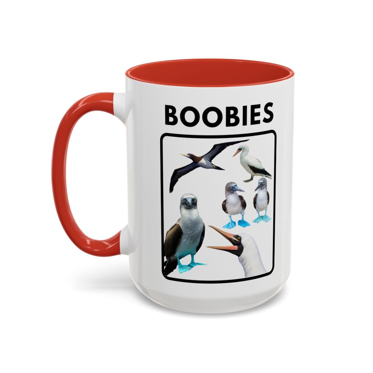 Start your morning with a grin and a little ocean breeze. This glossy ceramic mug pairs a crisp white exterior with a colored interior and handle, showcasing charming illustrations of blue-footed boobies under a bold header. The art feels playful and a touch irreverent—great for someone who loves seabirds, beach humor, or lighthearted wildlife nods over coffee. Fits easily in a cozy kitchen or on a cluttered desk, and the vivid print holds up through daily use. Sip slowly and let the silly, sun-drenched vibe wash over the routine.