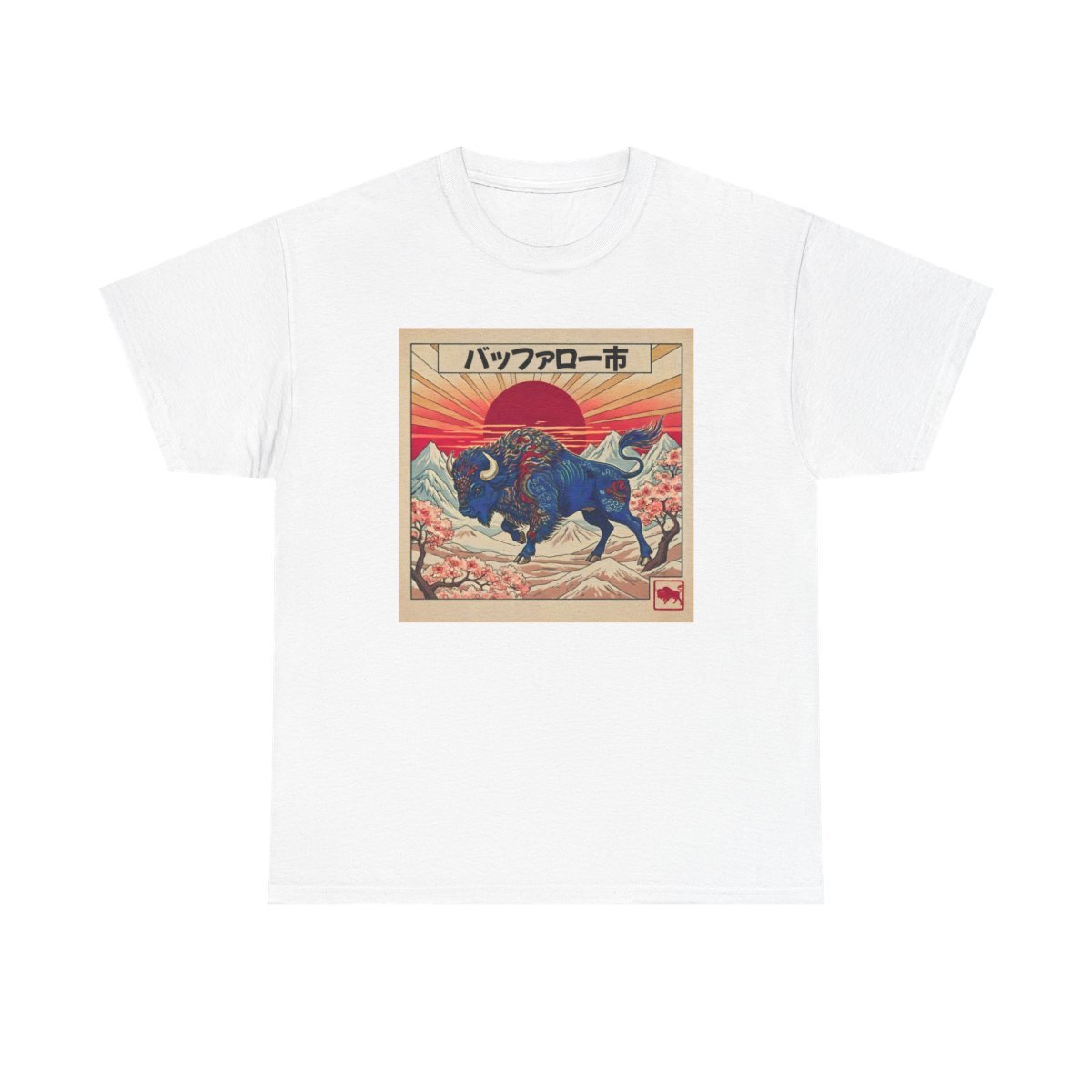 This Buffalo Bills football t-shirt combines the style of Japanese art with a classic fit and medium fabric for year-round comfort. Perfect for football fans who appreciate unique designs, this tee is ideal for casual wear and game days. The Japanese word for "buffalo" can be expressed as バッファロー (baffarō), which is the katakana transcription of the English word. Either way, Let's Go Buffalo!