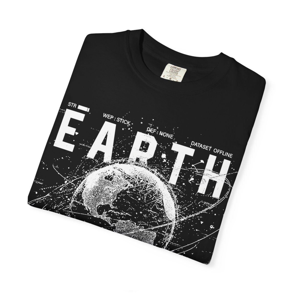 This soft, garment-dyed tee carries a vintage-science vibe — a distressed, monochrome Earth print surrounded by orbital lines and tiny technical annotations. It feels like a page torn from an old astronomy field book: quiet, curious, and a little nostalgic. Wear it to signal a love of space, geology, or thoughtful design; it layers easily under a jacket or stands alone with worn jeans. The relaxed cut and medium-weight cotton settle comfortably against the body, while the muted, baked-in color and sewn-in label give it an authentic lived-in character that gets better with each wash.