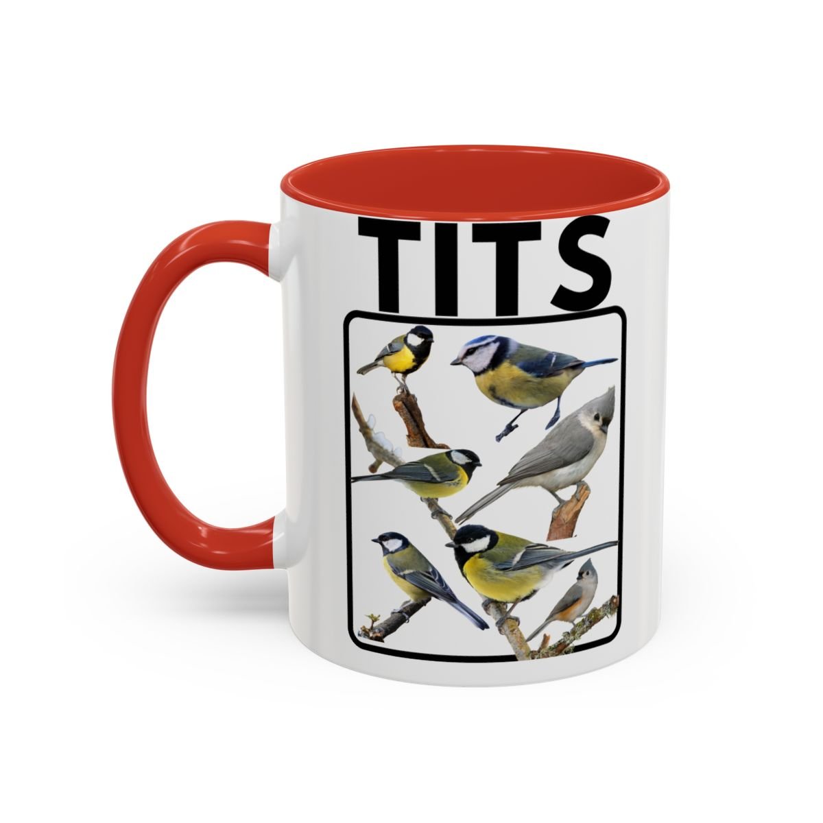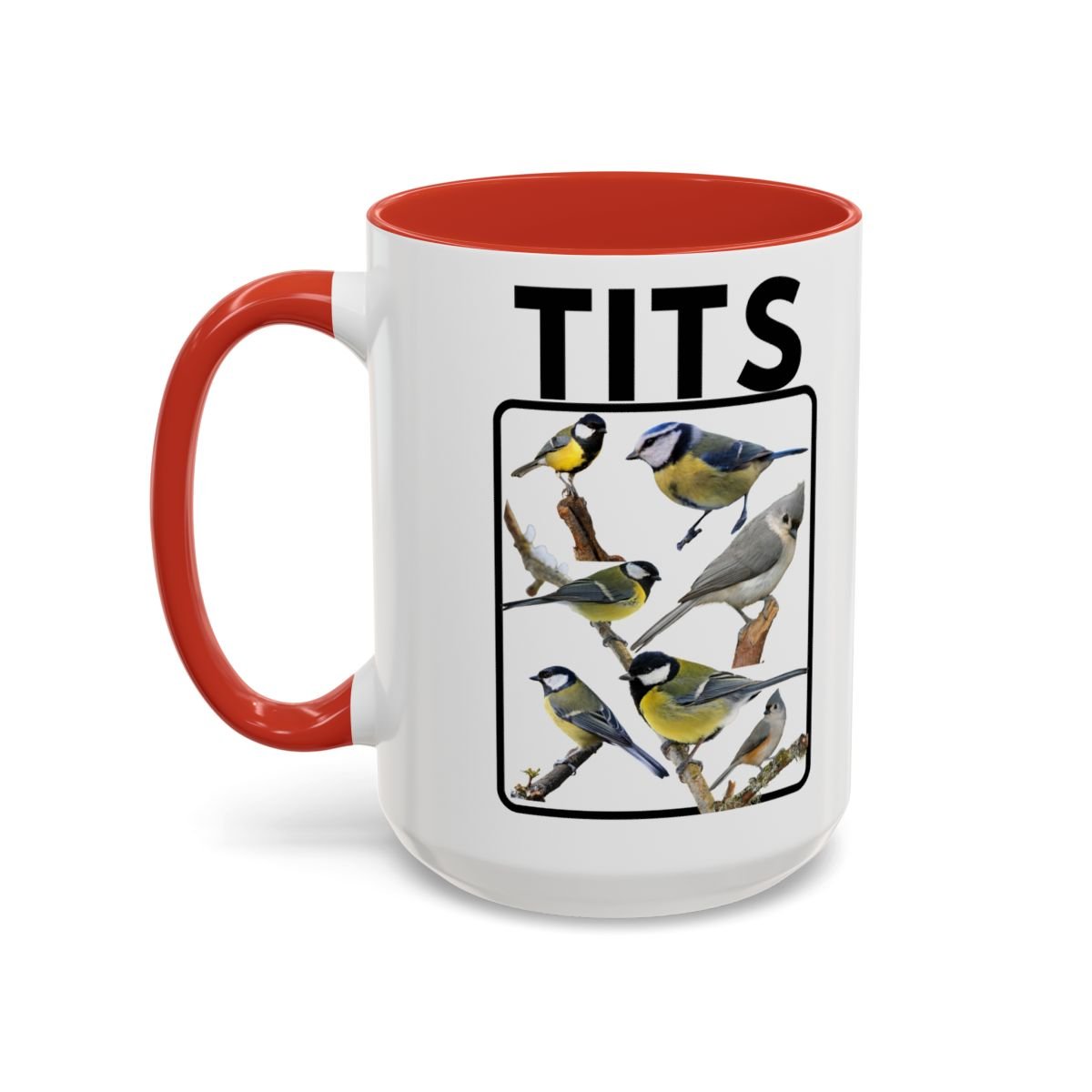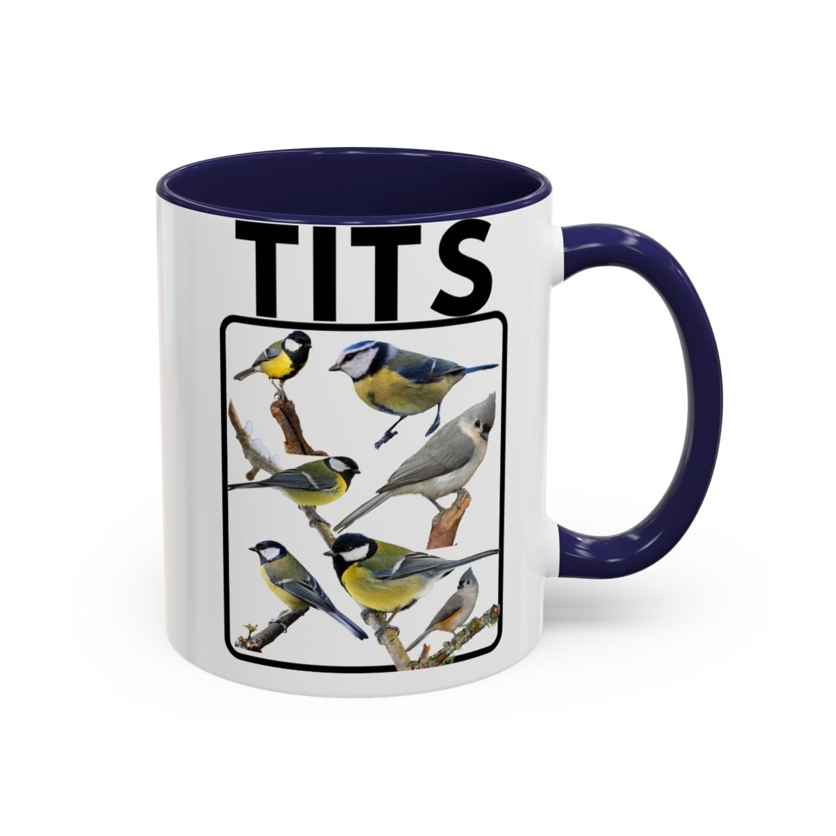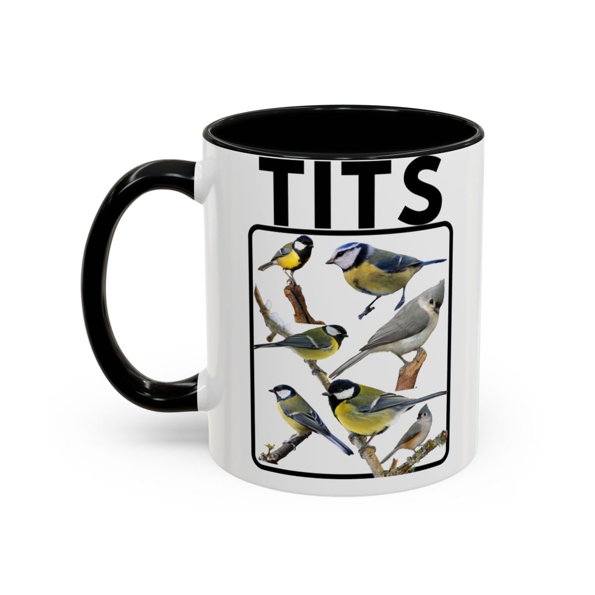 A funny bird-themed mug featuring a humorous titmouse design, perfect for adding a touch of whimsy to your morning coffee routine. This mug is suitable for both the office and home use, making it a great gift for bird lovers and those with a sense of humor. Ideal for starting your day with a smile or as a fun addition to your collection of mugs. Relevant for birthdays, holidays, or any occasion where a quirky gift is needed.
