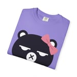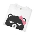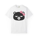 This heavyweight garment-dyed tee carries a sleepy, slightly sassy bear face with a pink bow — quiet attitude rendered in bold, simple lines. The soft, post-dye finish gives the shirt a lived-in feel that pairs naturally with worn jeans, cozy cardigans, or layered streetwear. It sits relaxed on the shoulders and holds its shape through wash after wash, so the bear’s expression keeps doing the talking whether you’re running errands, lounging at a café, or meeting friends for a low-key meetup. Subtle, playful, and a little moody — made for people who prefer personality over loud logos.