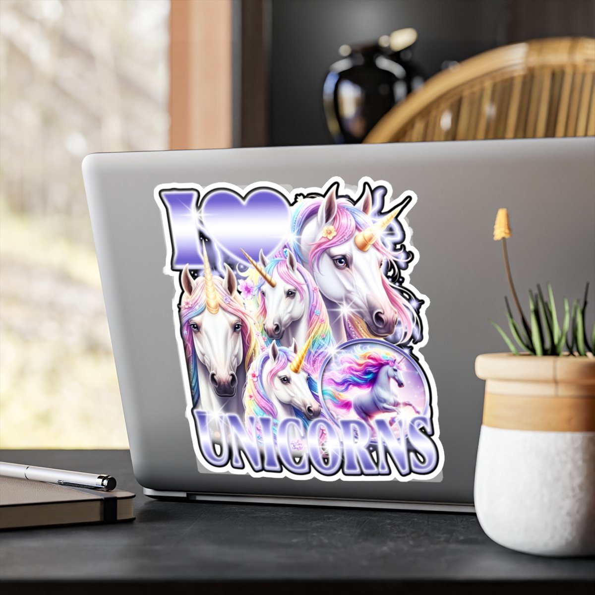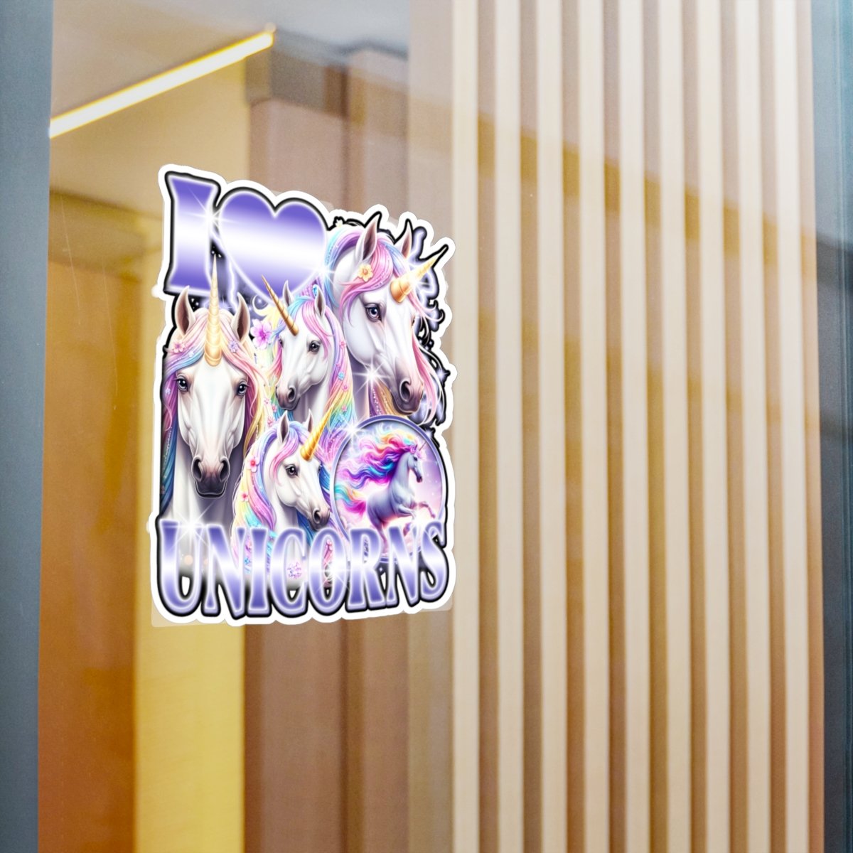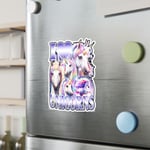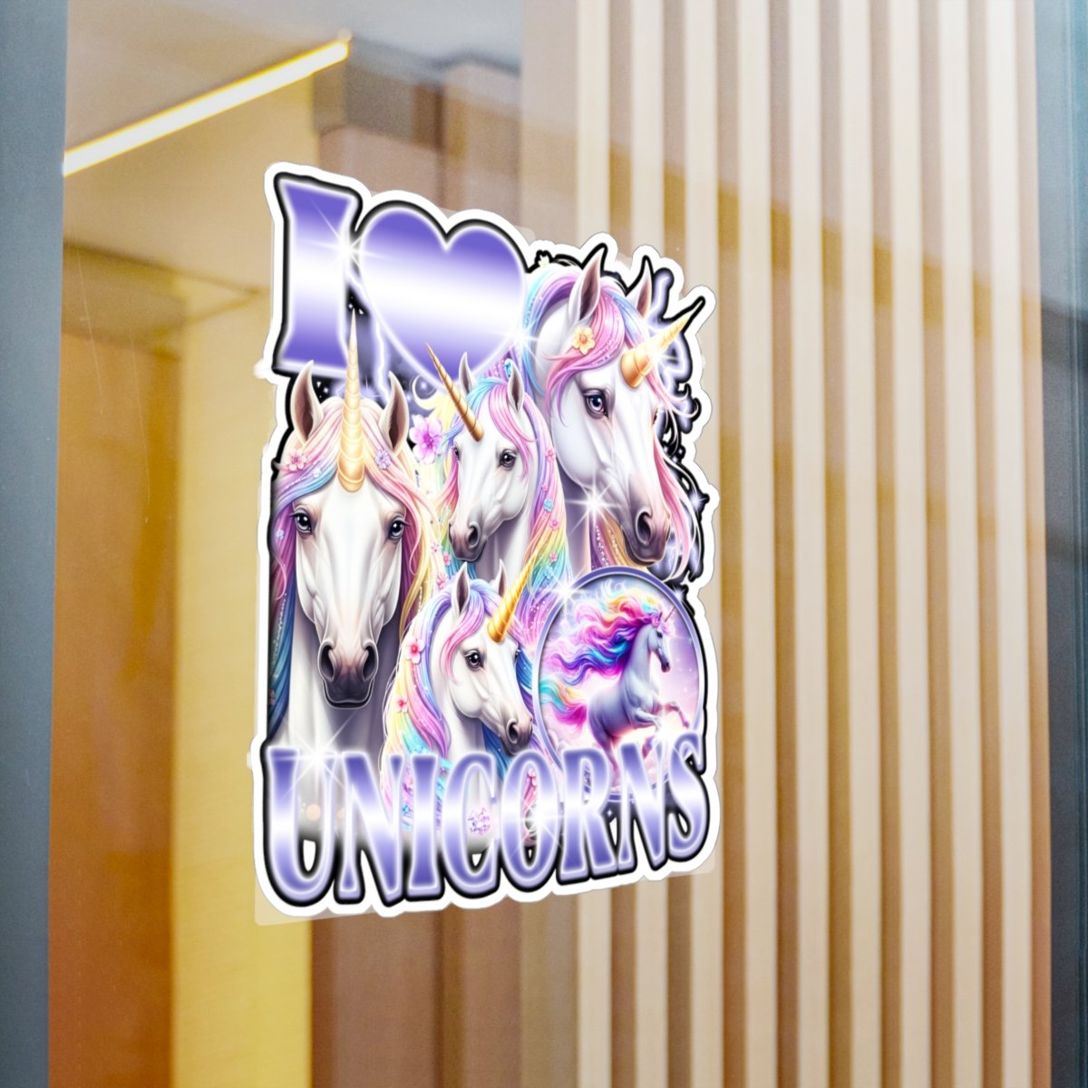 Bring a little magic wherever you stick it. This kiss-cut vinyl decal features a cluster of iridescent unicorns and bold lettering with a soft satin sheen. It clings with removable adhesive so you can decorate laptops, water bottles, mirrors, or windows without residue. Colors stay bright through sun and rain, and the subtle white border makes the cut shape pop against dark or reflective surfaces. Use it to personalize a planner, refresh a bedroom mirror, or add whimsy to a laptop before heading into class or a creative session.