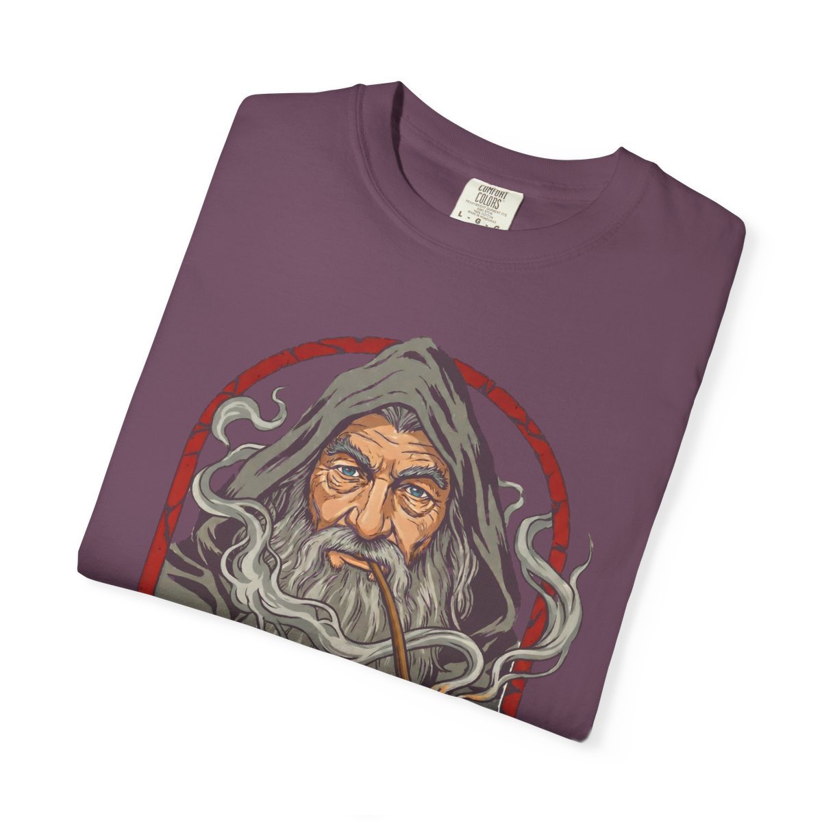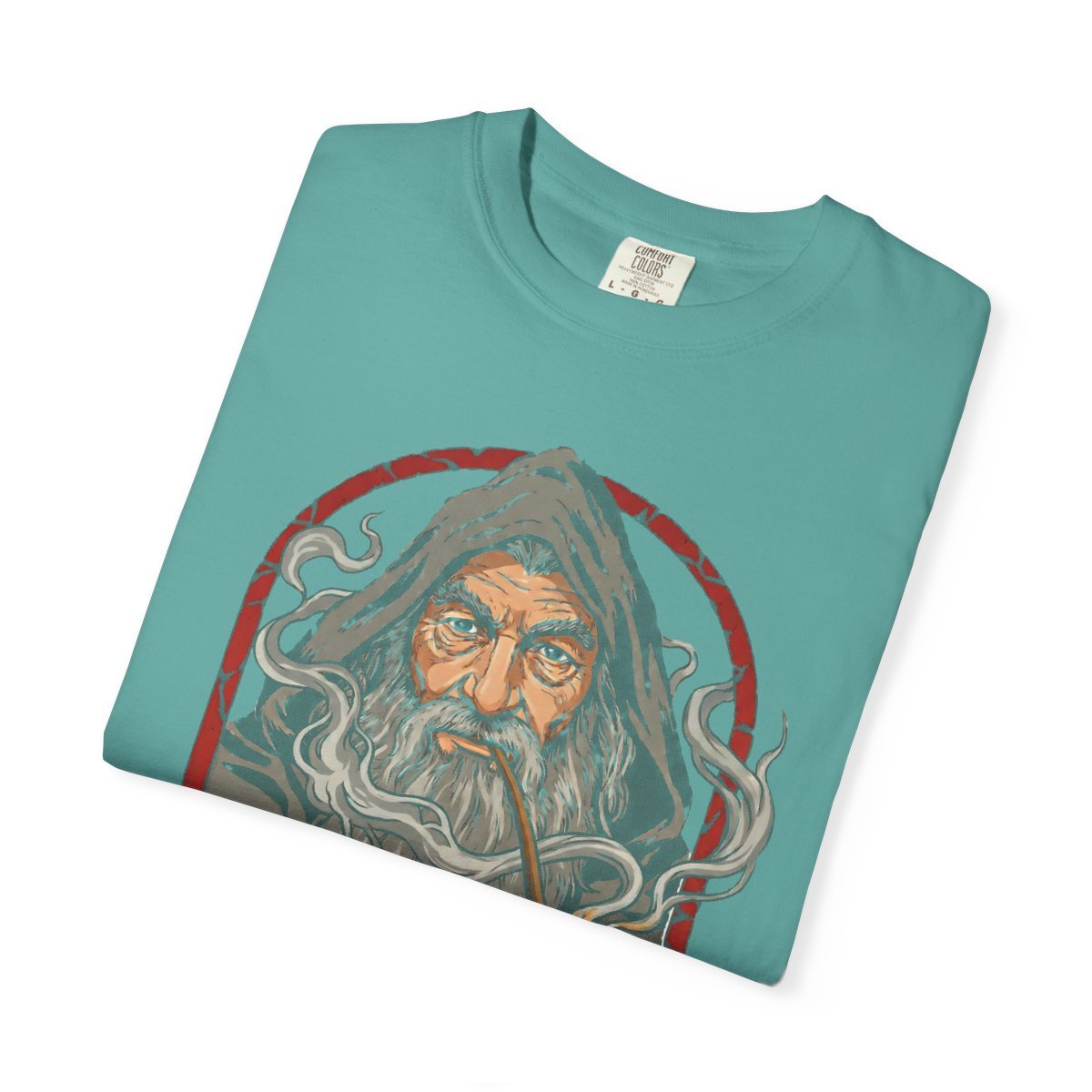 This heavyweight cotton tee channels a playful, bookish rebellion — a nod to the wizened wanderer who slips out at dusk to savor a smoke and a secret. The soft, garment-dyed finish feels lived-in from the first wear, and the relaxed fit drapes easily over layering pieces for cool evenings at the pub or fireside chats. The illustration and quote sit low-key, like a whispered joke among friends who love lore and late-night adventures. Wear it to a convention, a cozy game night, or when you want that comfortable, story-steeped look that says you’ve been on the road and found something worth keeping.