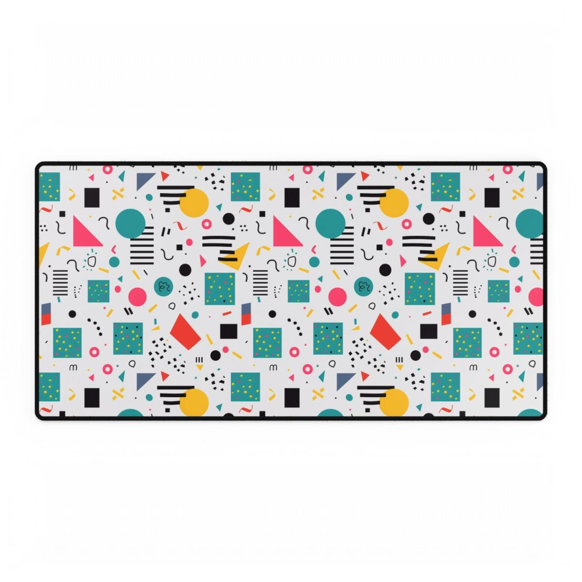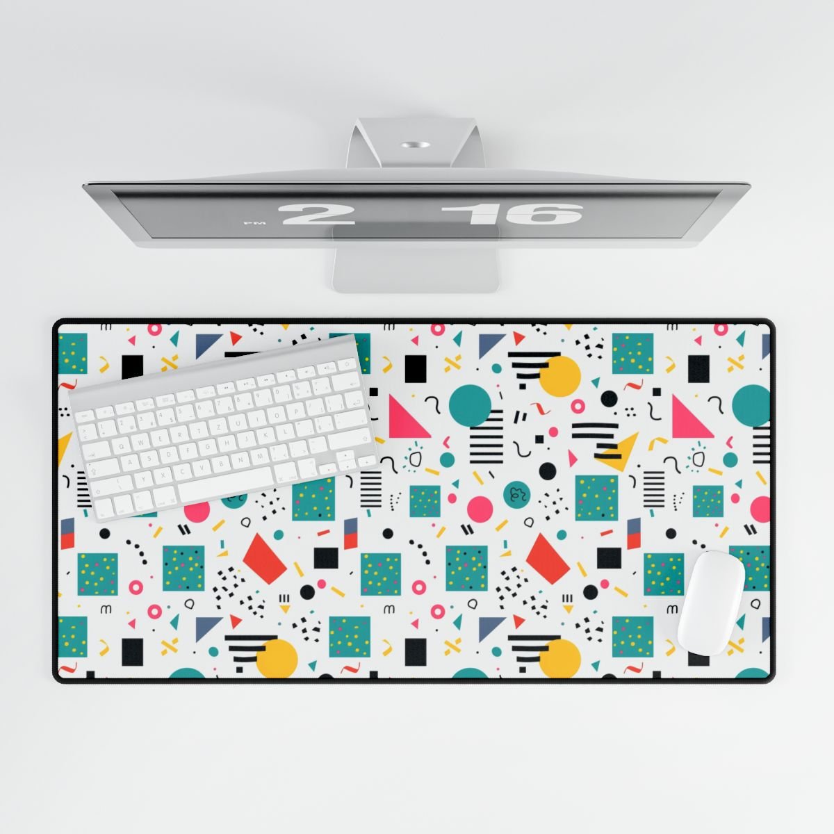 This 1980s Memphis pattern Desk Mat features a retro 80s and 90s design illustration, giving off a fun and nostalgic vibe. Perfect for those who love vintage aesthetics and want to add a pop of color to their workspace. Ideal for individuals who enjoy a unique and playful touch to their desk setup. Relevant for birthdays, holidays, and special occasions.