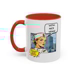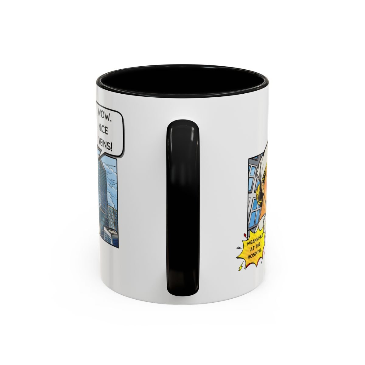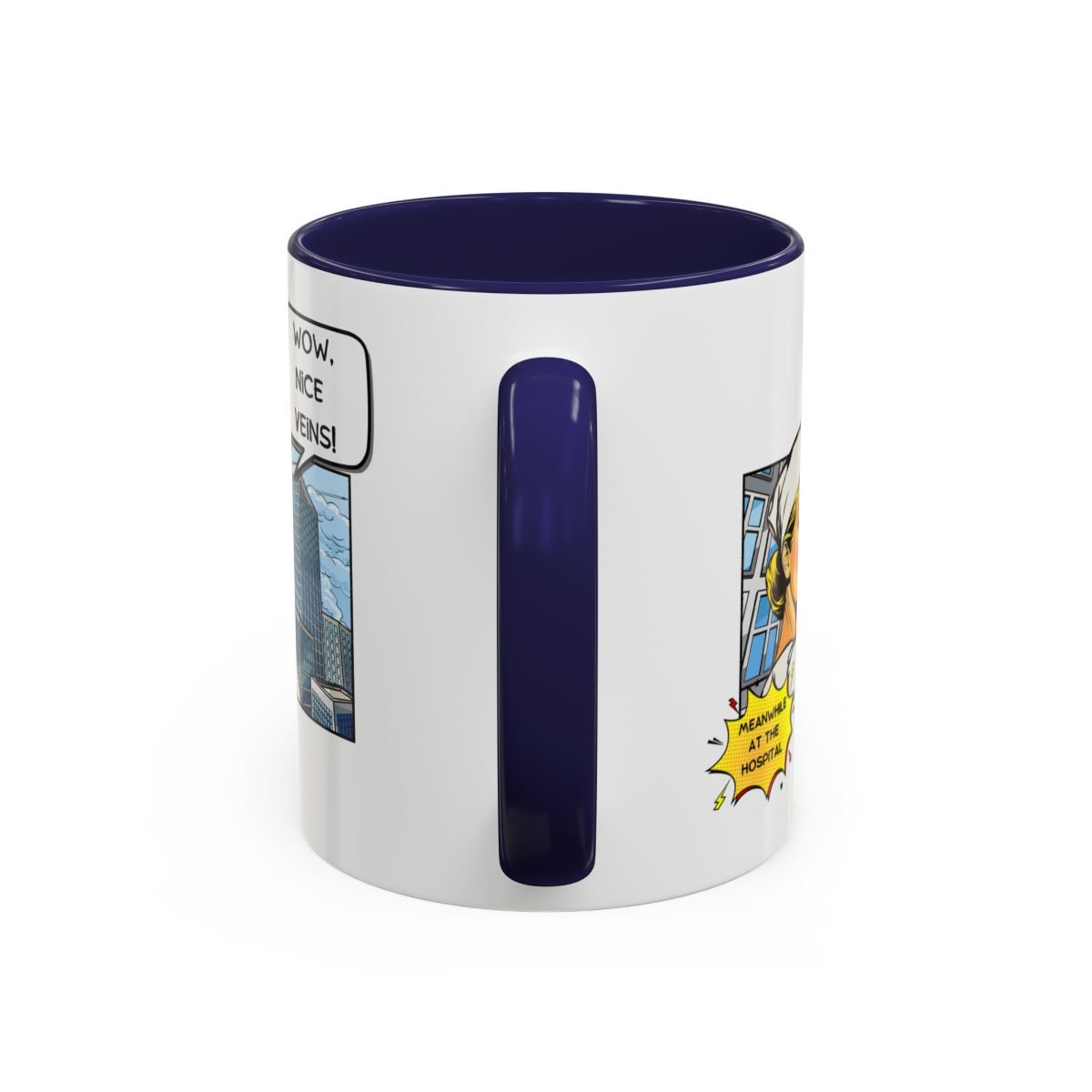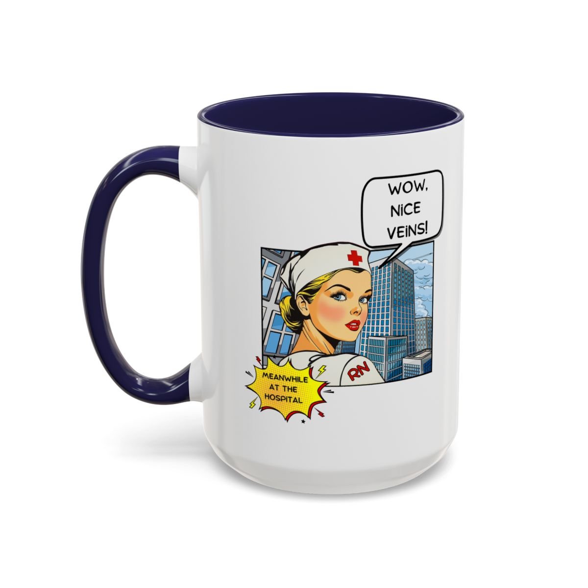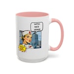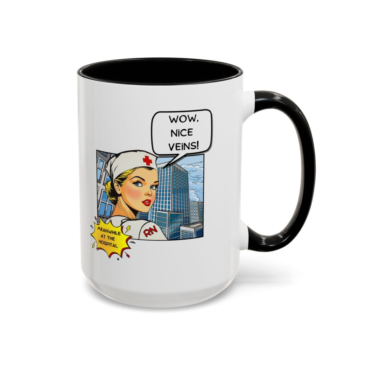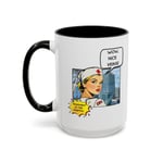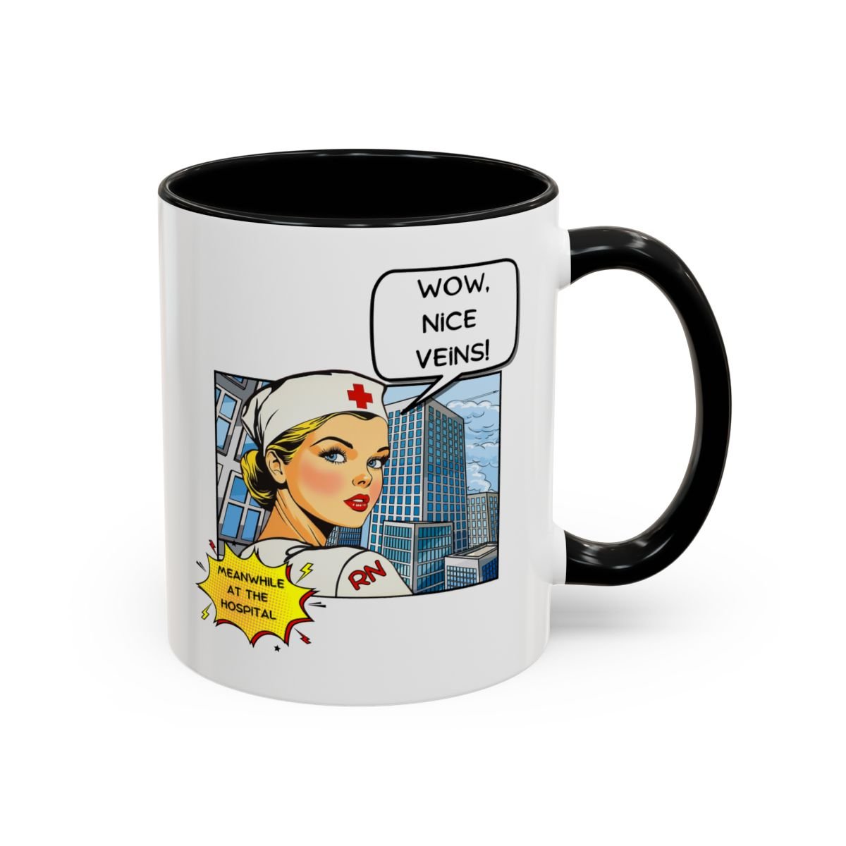 Vintage nursing themed coffee mug with a retro design reminiscent of Roy Lichtenstein art. Perfect for registered nurses who appreciate a pop art style touch to their morning routine. Ideal gift for Nurse's Day, birthdays, or graduation.