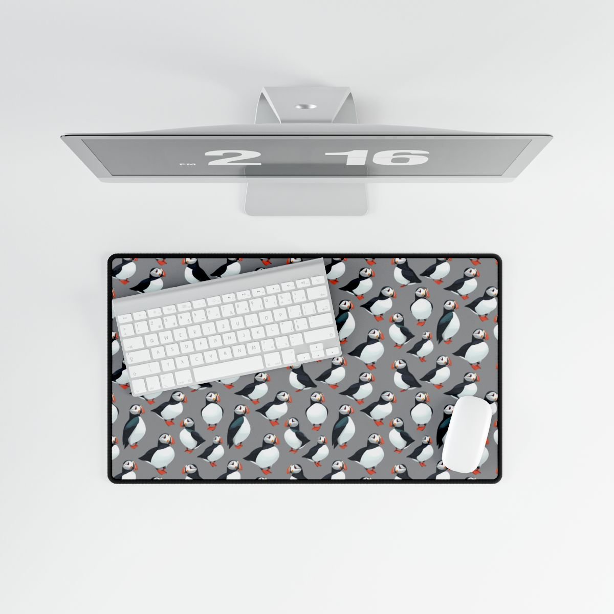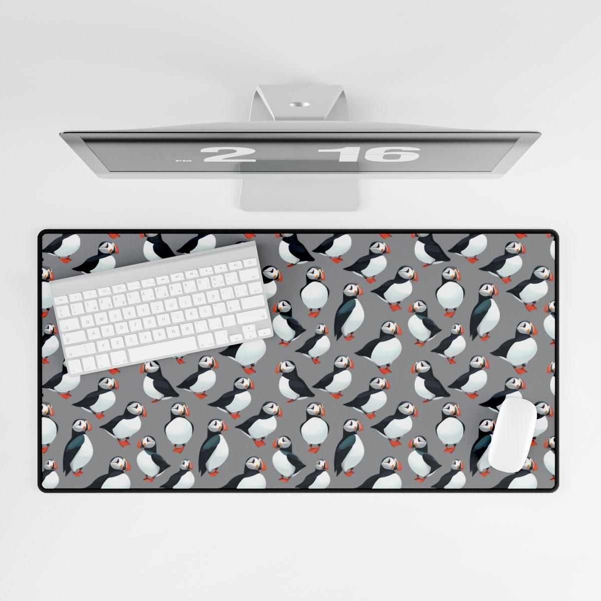 Puffin Desk Mat, Mouse Pad, Cute Bird Pattern, Office Accessories, Desk Protector, Work From Home Es