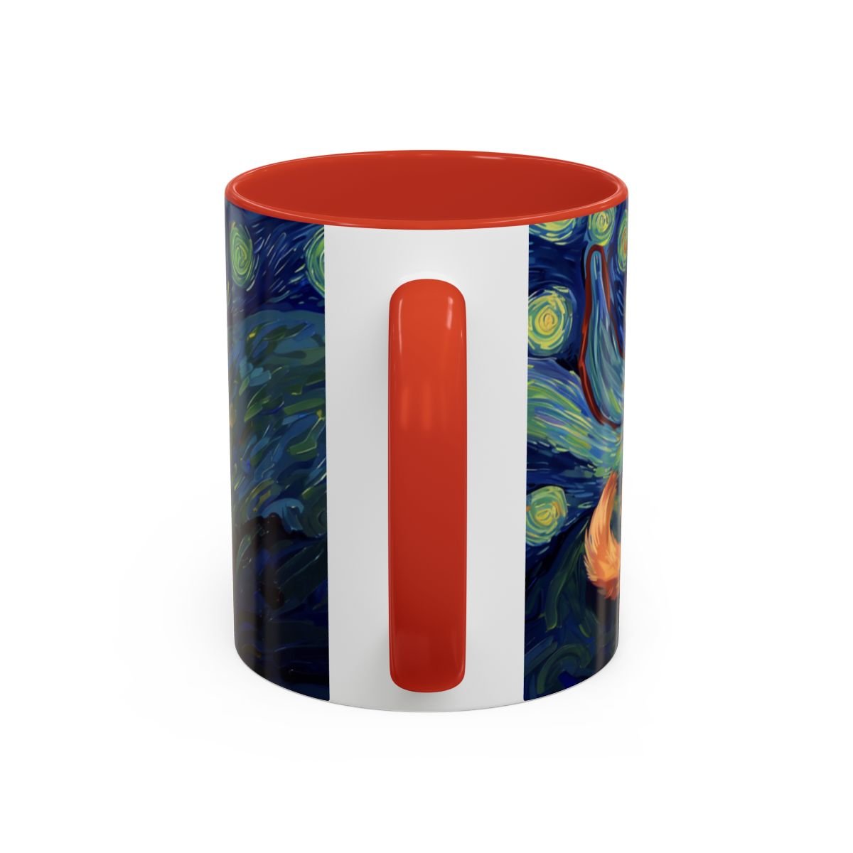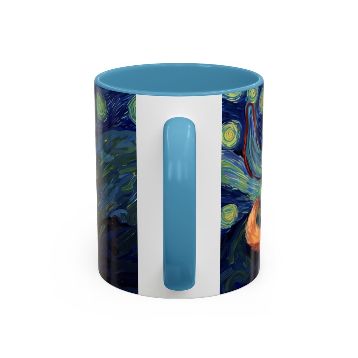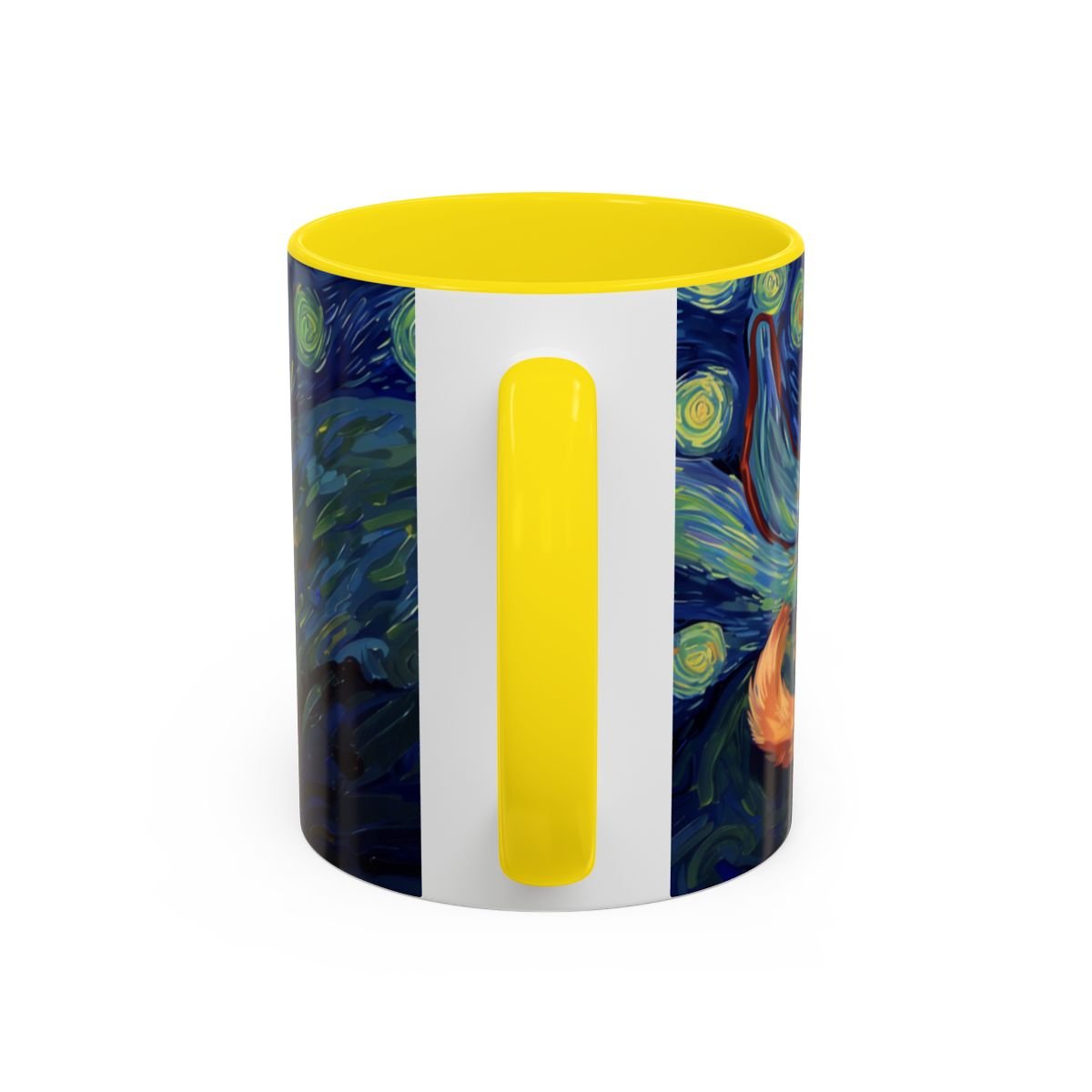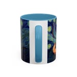 This ceramic accent mug brings a little gallery to your morning routine. The glossy, high-contrast print wraps around the mug, showing a sleepy orange cat curled into the swirls of a Starry Night–inspired sky. Deep navy and vibrant golds make the artwork pop against the colored interior and handle, so your coffee looks as artful as it tastes. It feels sturdy in the hand thanks to the C-shaped handle and the balanced weight of ceramic. Use the 11 oz for a quick espresso or the larger 15 oz when you need an extra pour — either way the colors stay bright through daily dishwasher and microwave use. Lead- and BPA-free, this mug blends practical durability with a cozy, dreamy aesthetic that slips easily into quiet mornings, late-night sketch sessions, or relaxed weekends at home.