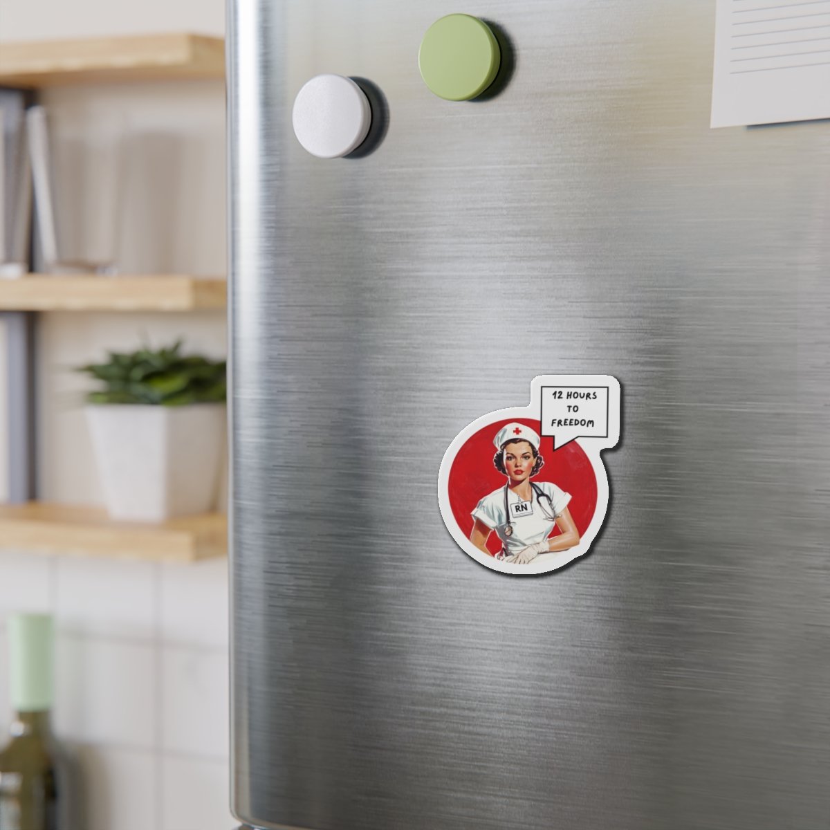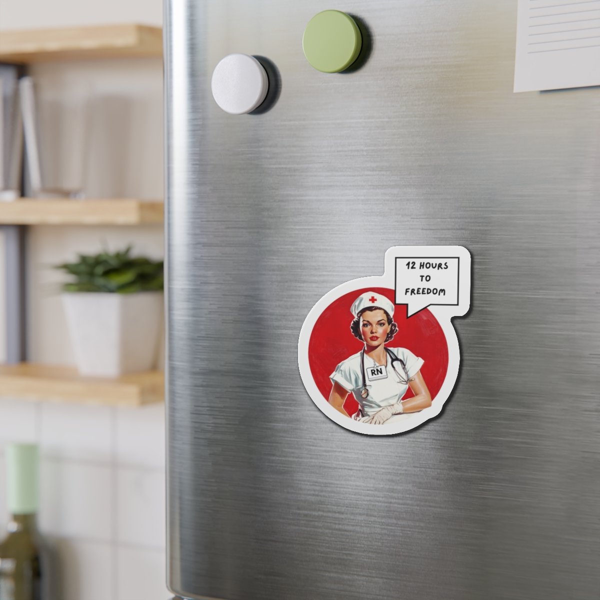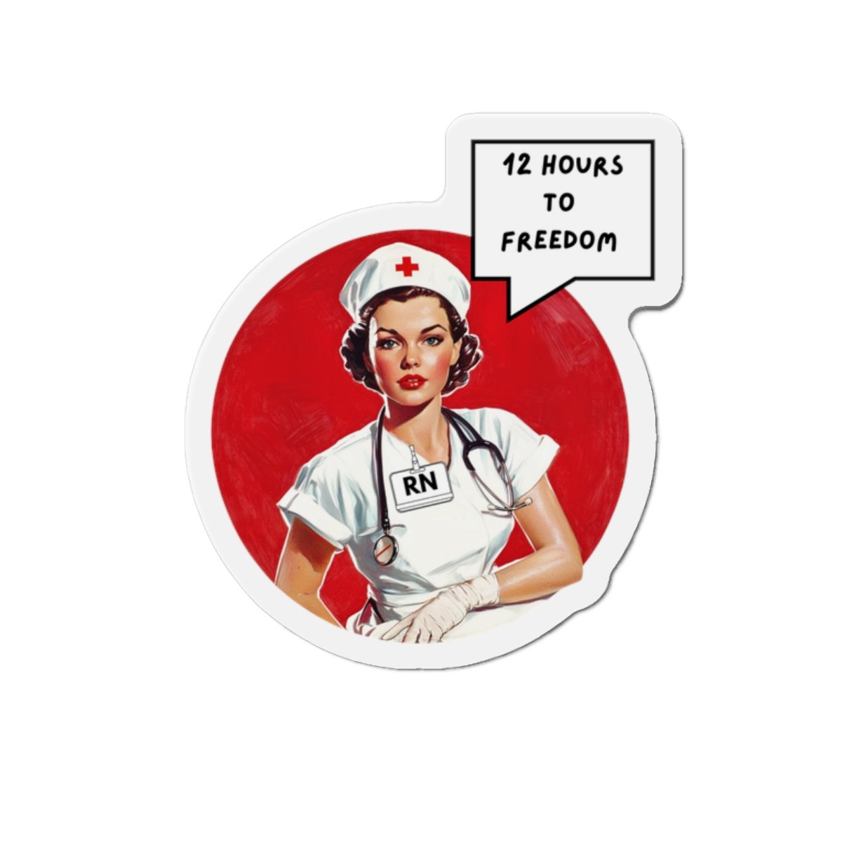 RN Nurse Retro Die-Cut Magnet — "12 Hours to Freedom"